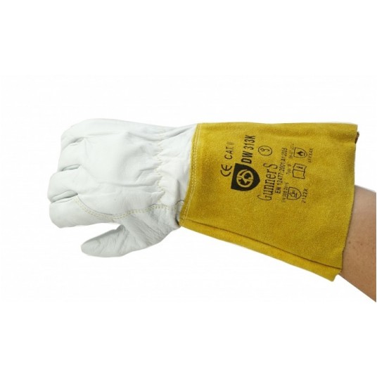 Rękawice GUNNERS DW-313K/10 TIG – żółte rękawice spawalnicze z miękkiej skóry naturalnej, przeznaczone do spawania metodą TIG.