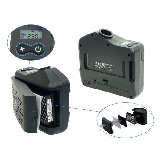 Przyłbica spawalnicza z nawiewem oraz zmiennym stopniem ochrony DIN 3/4-8/9-13, zmiennym czasem rozjaśniania i możliwością ustawienia wrażliwości czujników. Przeznaczone do spawania metodą MIG/MAG, TIG i TIG PULSE, MMA i cięcia plazmą, wyposażone w funkcję szlifowania