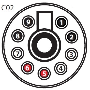 Układ pinów C02: pilot 5-6; przycisk 1-2; zabezbieczenie 8-9.