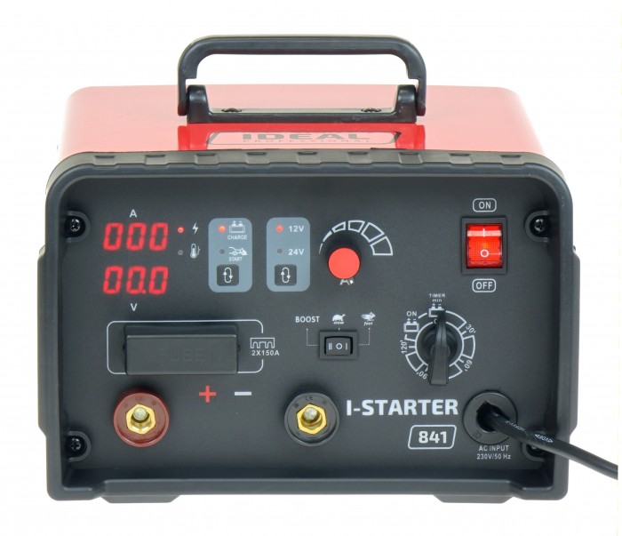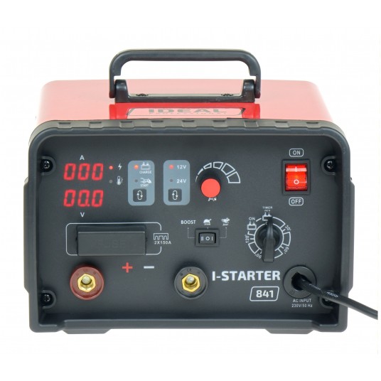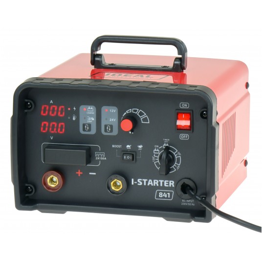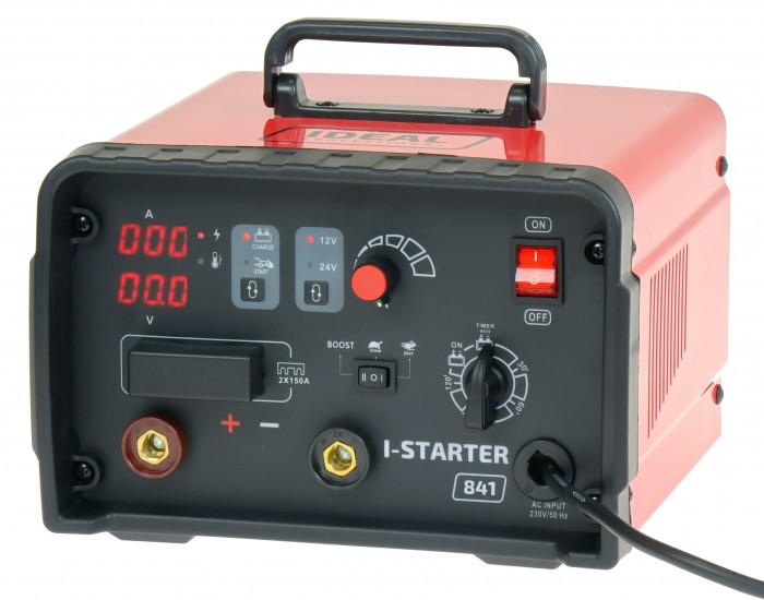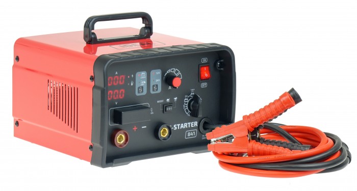 I-STARTER 841 jest inwertorowym prostownikiem do ładowania 12 i 24 woltowych akumulatorów kwasowych, posiadający funkcję rozruchu samochodów z silnikami benzynowymi oraz diesla.