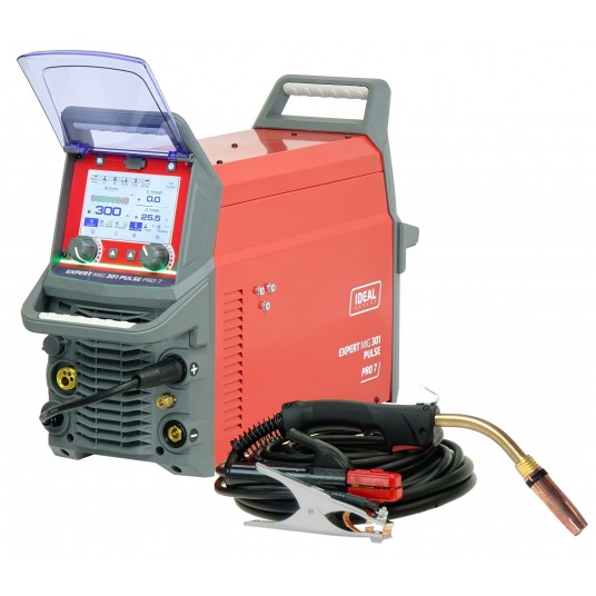 EXPERT MIG 301 PULSE Pro7 LCD jest inwertorowym, synergicznym i wielofunkcyjnym źródłem spawalniczym, przeznaczonym do spawania łukowego metodą MIG/MAG, FLUX, TIG LIFT oraz metodą MMA (elektrodą otuloną). Umożliwia także spawanie prądem pulsacyjnym: pojedynczy PULS oraz podwójny PULS. Urządzenie zostało zaprojetowane do szerokiego zakresu zastosowań: od prac konserwacyjnych, przez spawanie konstrukcji stalowych, aż do napraw nadwozi samochodowych.