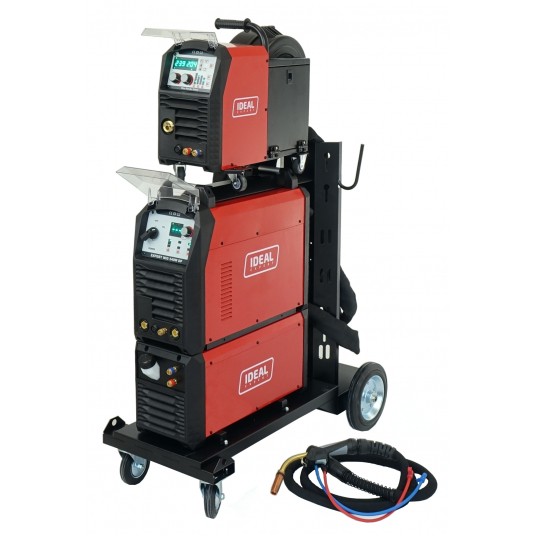 Dostawa obejmuje urządzenie z zewnętrznym 4-rolkowym podajnikiem drutu, przewodem połączeniowym źródło podajnik o długości 10 m, profesjonalnym uchwytem spawalniczym chłodzonym cieczą MIG 500 o długości 4 metry, przewodem elektrodowym o długości 3 metry, przewodem masowym o długości 3 metry oraz rolkami do podajnika 1,0 - 1,2 do stali. W zestawie także wózek oraz chłodnica (bez cieczy).