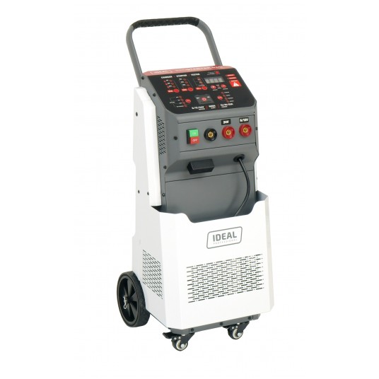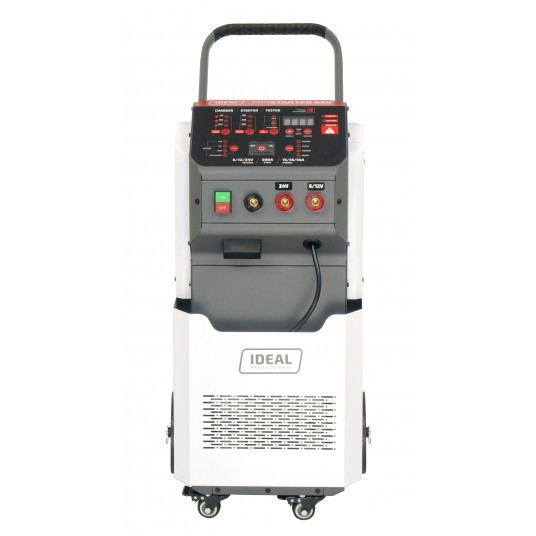 Prostownik do ładowania i rozruchu 6, 12 i 24 woltowych akumulatorów: WET, AGM, GEL, MF, EFB, LFP. Zasilanie 230V, napięcie ładowania 6/12/24 V, prąd ładowania 55 A, prąd rozruchu 600 A.