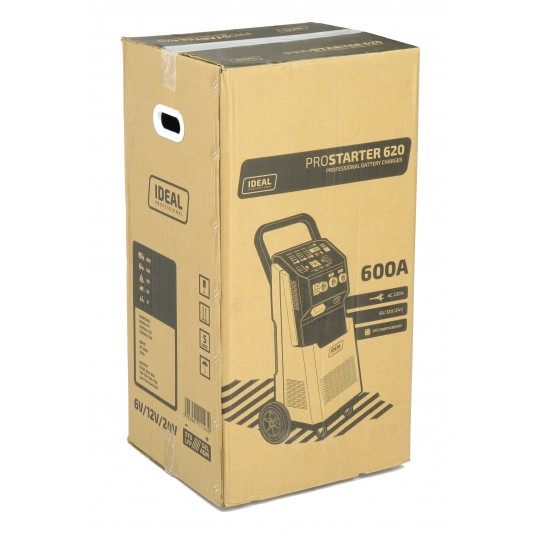PROSTARTER 620 AUTOMATIC jest profesjonalnym prostownikiem do wspomagania rozruchu pojazdów oraz ładowania 6, 12 i 24 woltowych akumulatorów: