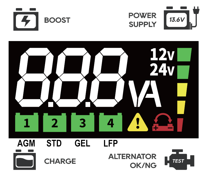 7-etapowy proces ładowania zapewnia uzyskanie optymalnych warunków ładowania akumulatora. Automatyczny układ sterowania dopasuje każdy z 9 etapów ładowania do poprawnego ładowania akumulatora: