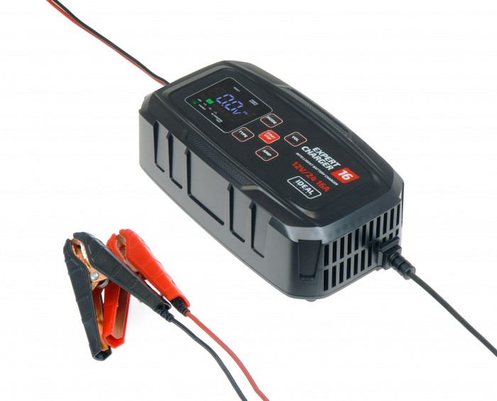 EXPERT CHARGER 16 jest wielofunkcyjnym elektronicznym prostownikiem do ładowania 12 woltowych oraz 24 woltowych akumulatorów: