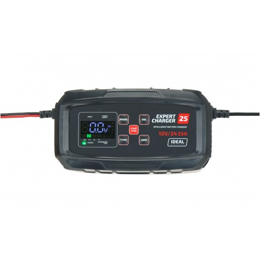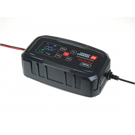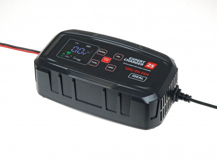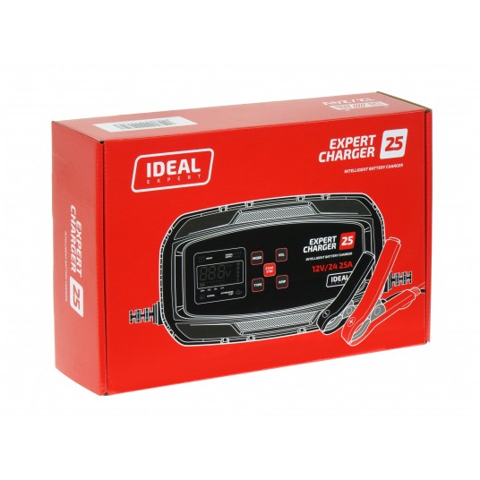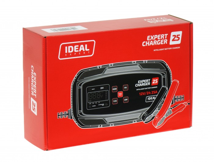 EXPERT CHARGER 25 jest wielofunkcyjnym elektronicznym prostownikiem do ładowania 12 woltowych oraz 24 woltowych akumulatorów:
