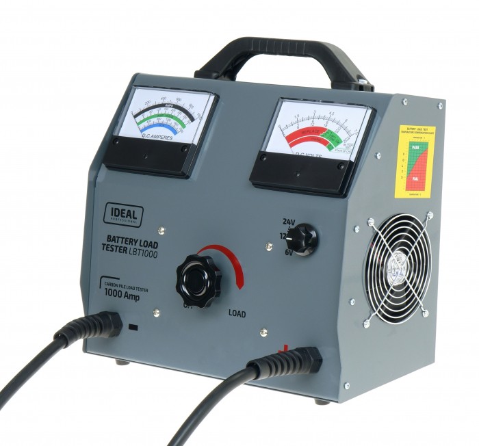 Tester akumulatora - obciążeniowy do szybkiego badania akumulatorów rozruchowych 6V, 12V lub 24V.