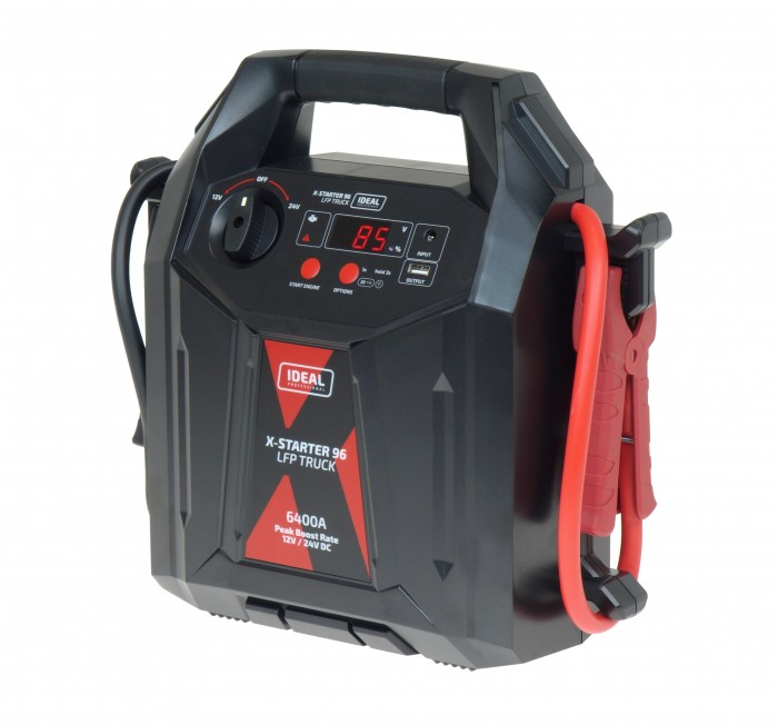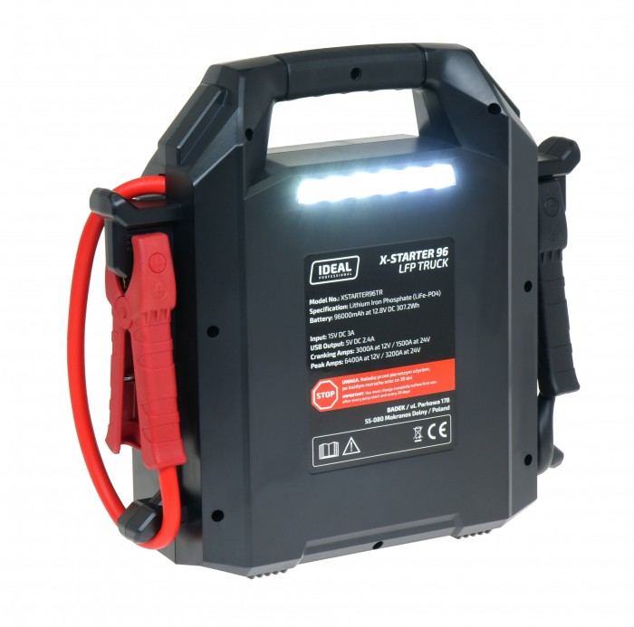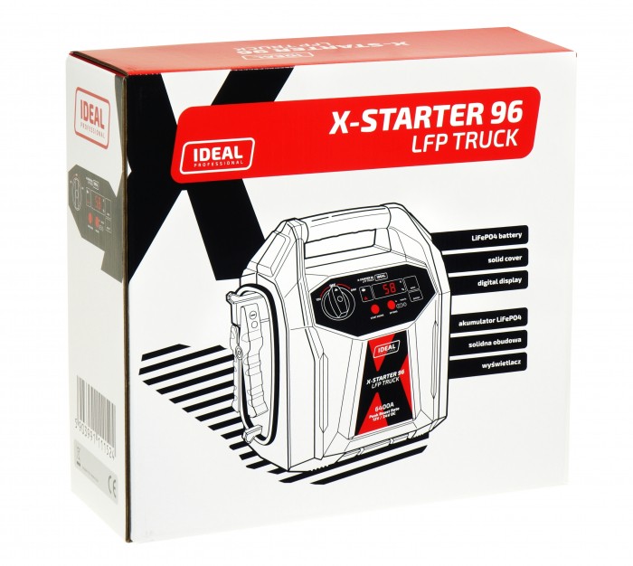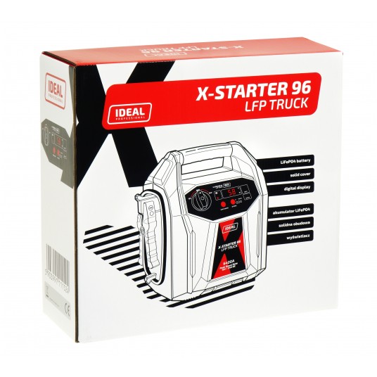 X-STARTER 96 LFP TRUCK jest przenośnym urządzeniem do wspomagania rozruchu pojazdów, zbudowanym na bazie baterii litowej, łączącym funkcje:
