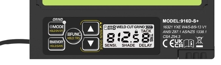 Przyłbica automatyczna APS Pro 916D-S+ BLACKTrueView+ ze zmiennym stopniem ochrony DIN 4/5-8/9-13, zmiennym czasem rozjaśniania i możliwością ustawienia wrażliwości czujników.