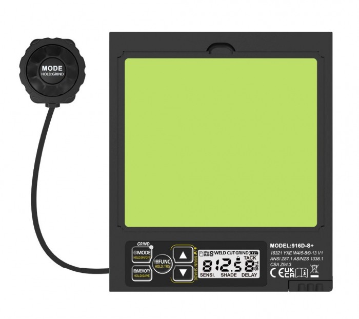 Przyłbica automatyczna APS Pro 916D-S+ BLUE MATT TrueView+ ze zmiennym stopniem ochrony DIN 4/5-8/9-13, zmiennym czasem rozjaśniania i możliwością ustawienia wrażliwości czujników.