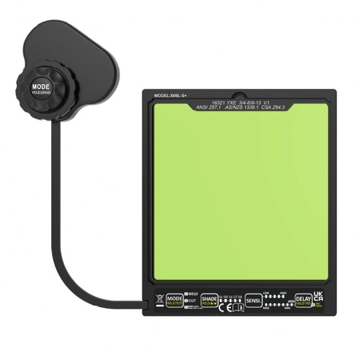 Przyłbica automatyczna APS Pro X66L-S+ BLACK TrueView+ ze zmiennym stopniem ochrony DIN 4/5-8/9-13, zmiennym czasem rozjaśniania i możliwością ustawienia wrażliwości czujników.