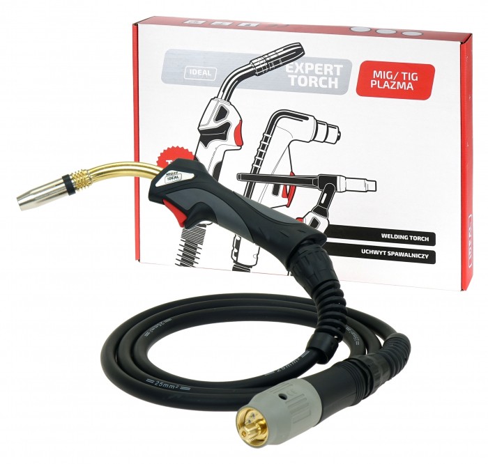 Wyposażony w solidną i wytrzymałą rękojeść, która zapewnia ergonomiczną, niezawodną oraz wygodną pracę spawania.