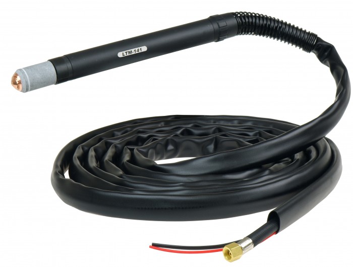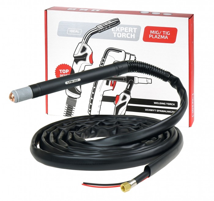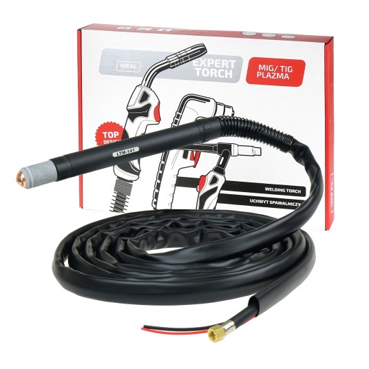 Uchwyt zakończony przewodem prądowo-powietrznym ze złączem 1/4G, przewodem łuku pilotującego oraz 2 przewodami sterującymi.
